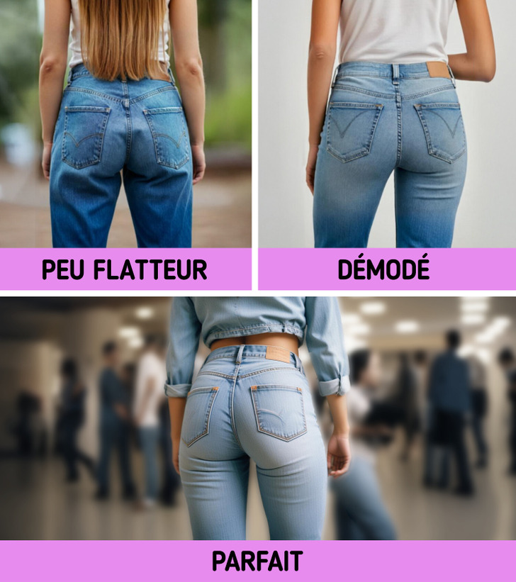 La position des poches sur un jean peut avoir un impact significatif sur ton apparence générale. Les poches placées trop bas, courantes dans certains styles, peuvent donner l’impression de flaccidité, diminuant ainsi la mise en valeur des courbes naturelles du corps.