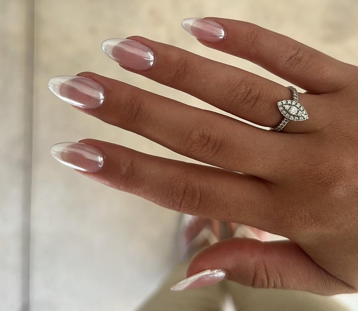 Si tu cherches une manucure qui allie modernité, allure précieuse et originalité, tout en gardant le côté sophistiqué des classiques, la French avec une finition chromée est le choix idéal. Ce design sublime n’importe quelle tenue de soirée. Les experts recommandent une base discrète, comme un nude, un blanc laiteux ou une base transparente, car c’est l’éclat métallique qui doit être la star. Pour cela, on utilise une poudre de chrome à frotter ou un gel vernis nacré. C’est ainsi, de manière subtile, que tu peux t’approprier une tendance.