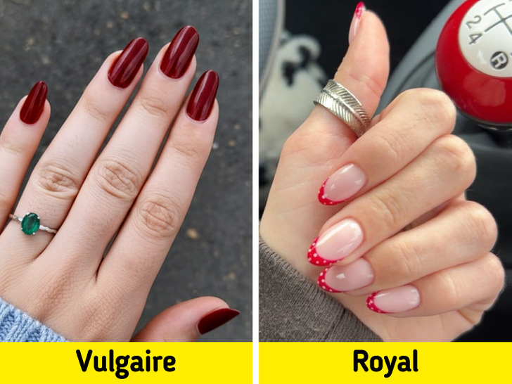 Comme le rapportent les spécialistes du magazine de mode Instyle, le pois est considéré comme l’imprimé incontournable de l’année 2025. C’est un motif classique, associé à la féminité, au chic et à la mode vintage. Associé à la French manucure, il prend un air moderne et, surtout, reste indémodable. Essaie de n’appliquer les pois que sur le bord libre de l’ongle. Les experts suggèrent d’explorer des nuances comme le bleu pastel associé au marron, mais les combinaisons classiques comme le blanc et noir ou le blanc et rouge fonctionnent toujours à merveille. Regarde comme une french manucure rouge rehaussée de pois est incroyablement élégante. C’est bien plus frais et original qu’un simple vernis rouge vif, surtout sur des ongles longs — une tendance que de nombreux experts et internautes jugent parfois de mauvais goût, voire vulgaire.