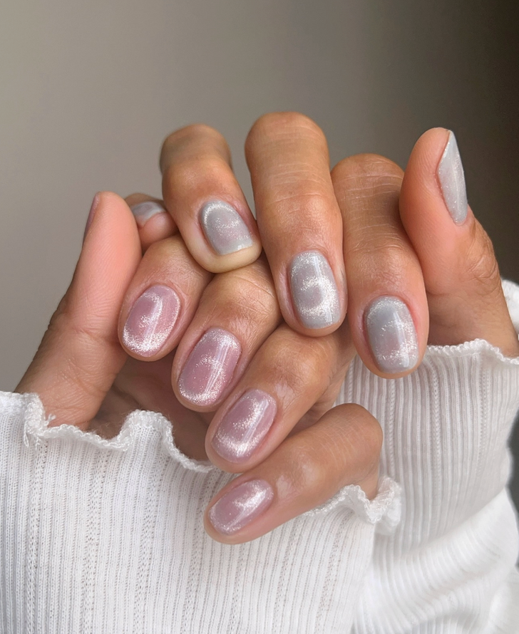Les ongles “cat eye” restent à la mode, même si à l’automne 2025, ce favori des fashionistas se présentera sous un nouveau jour. Si la finition classique vous semble trop simple, demandez à votre prothésiste de créer un motif tourbillonnant motif tourbillonnant pour lui donner une touche supplémentaire.