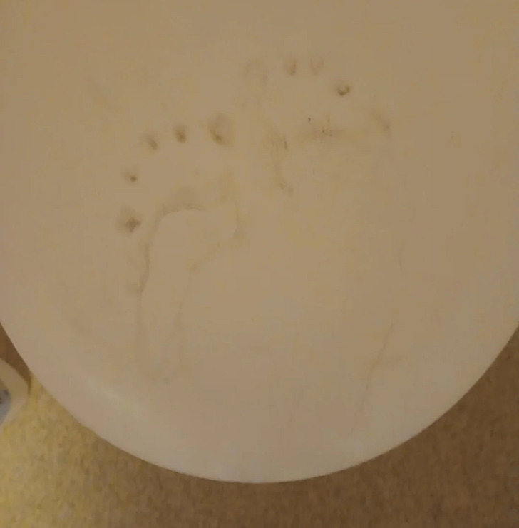 4. “J’ai remarqué ces empreintes pâles, de tailles et d’alignements différents, sur la lunette de mes toilettes. Je vis seul...”