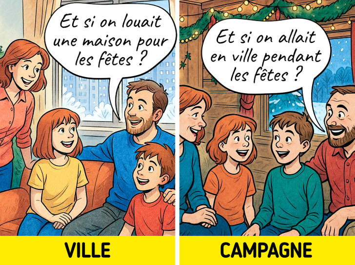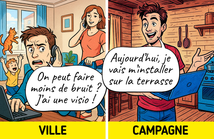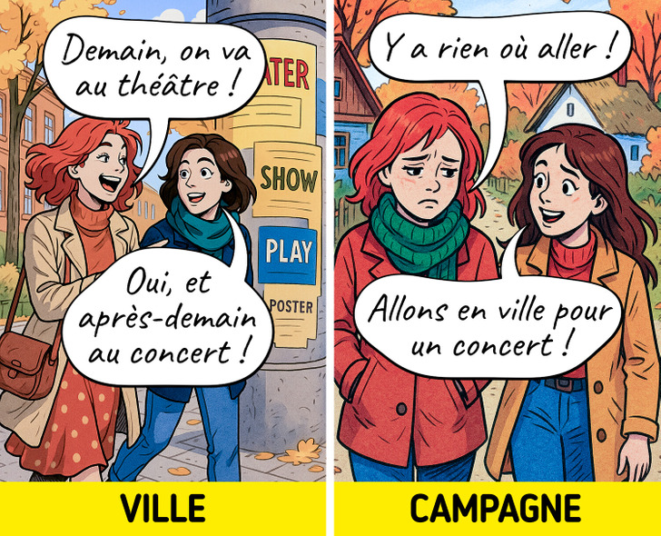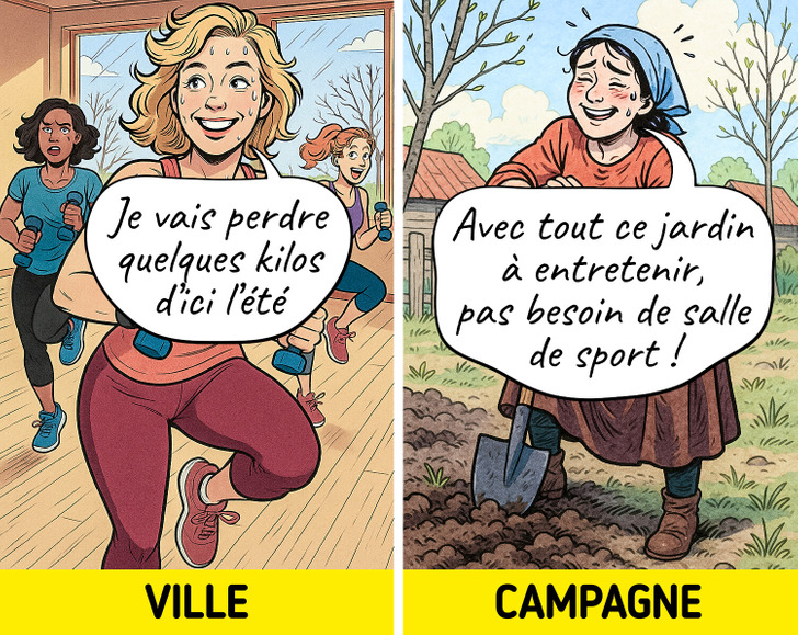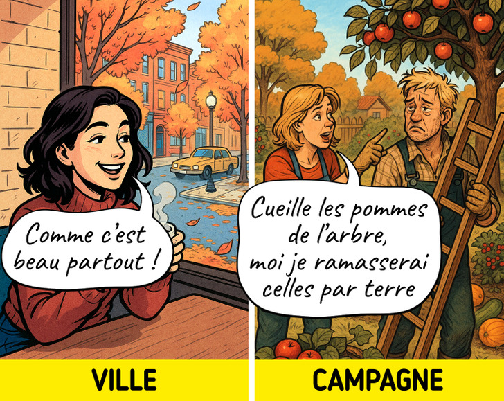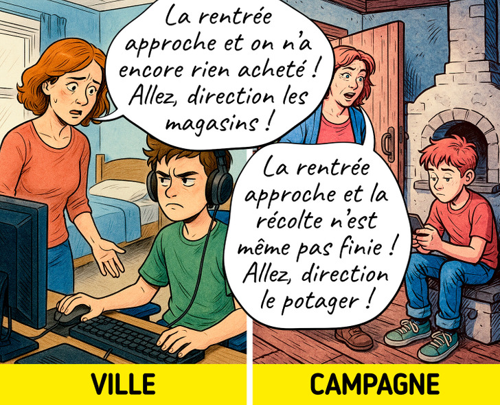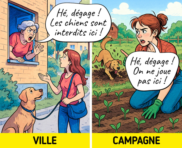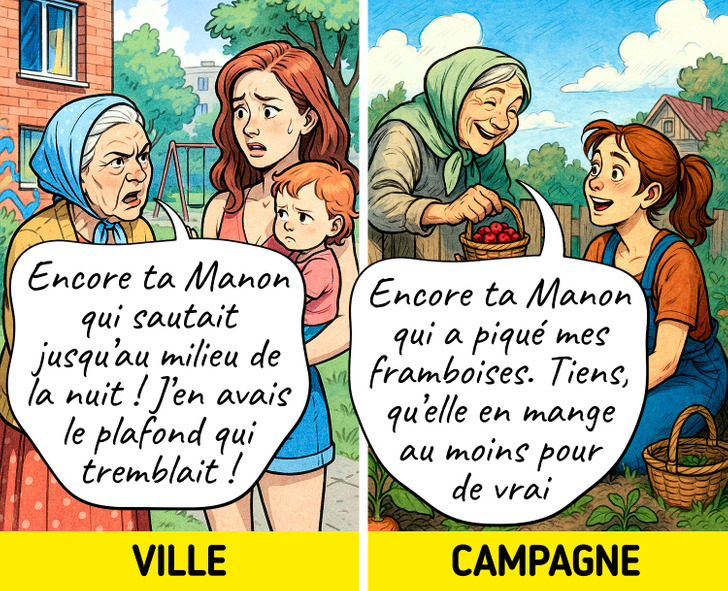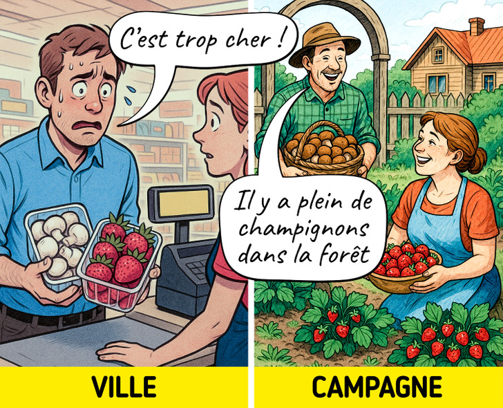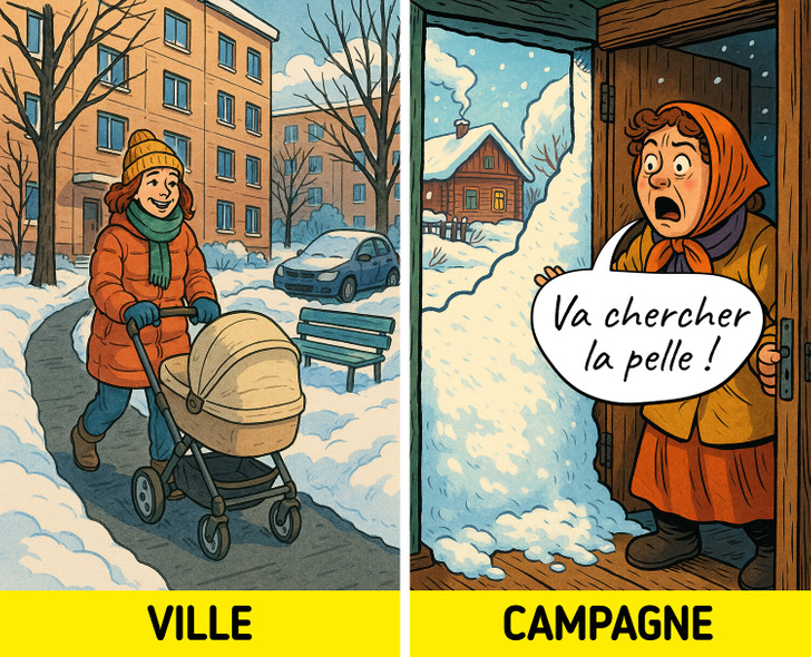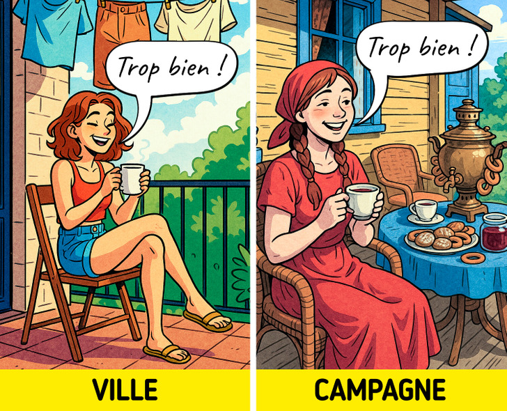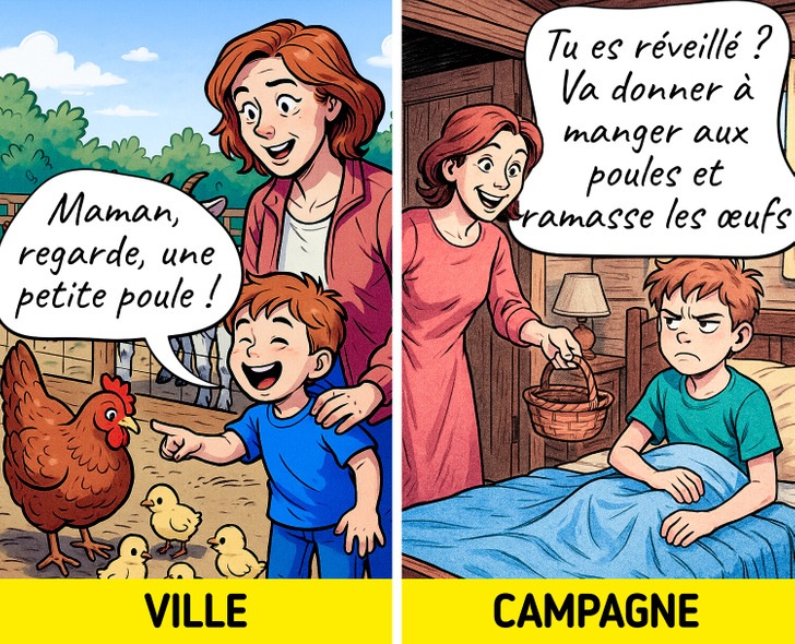 La ville et la campagne, ce sont vraiment deux mondes à part — et pourtant, beaucoup d’entre nous passent sans cesse de l’un à l’autre. L’été, ces différences deviennent encore plus évidentes : le rythme, les sons, même l’air qu’on respire ne sont plus les mêmes. C’est ce contraste qui nous a inspiré ces bandes dessinées pleines d’humour.
