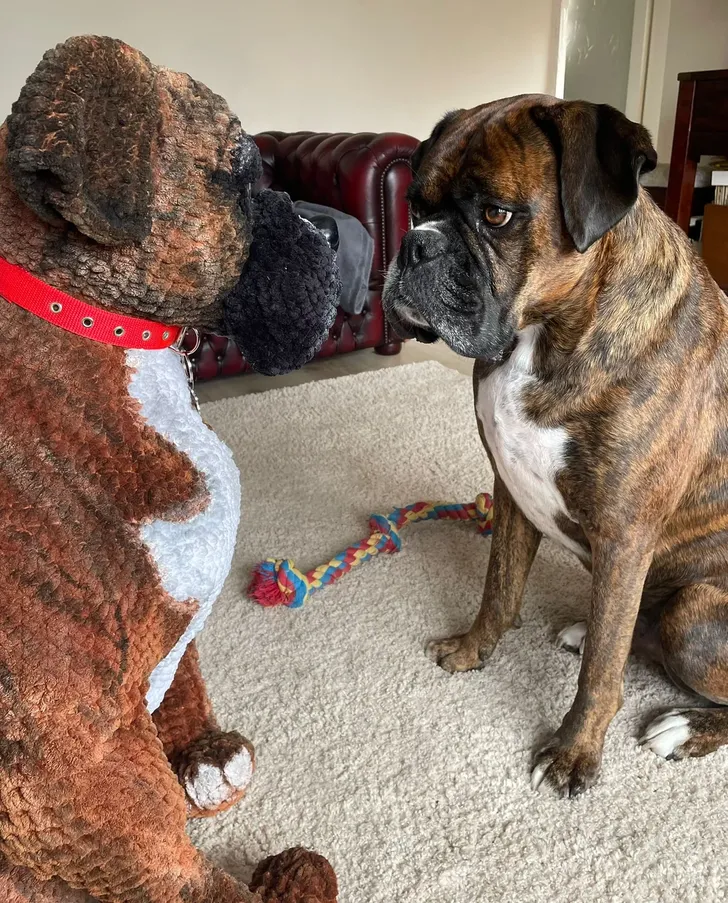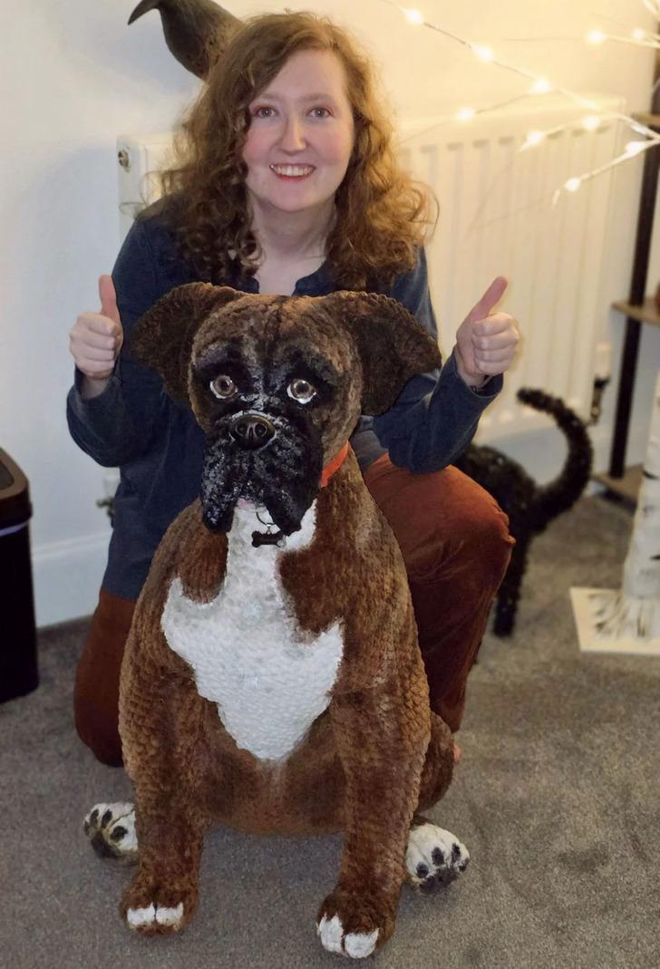 14. “J’ai crocheté cette réplique grandeur nature d’un chien Boxer pour la fiancée de mon frère. Il m’a fallu environ 110 heures du début à la fin 🧶”