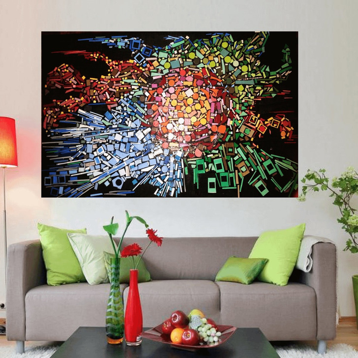 " J’avais un vieux plateau de table et une tonne d’échantillons de peinture. J’ai repeint le plateau en noir, et j’ai transformé les échantillons colorés en une mosaïque "