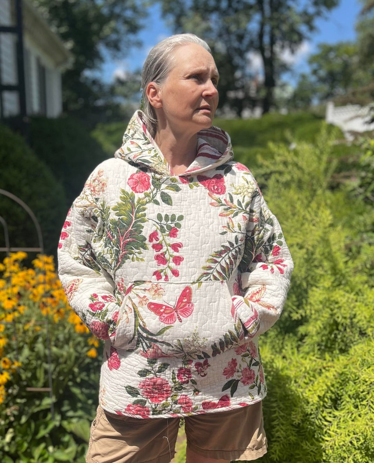" J’ai cousu cet ensemble avec un manchon pour ma grand-mère, qui a tout le temps froid "