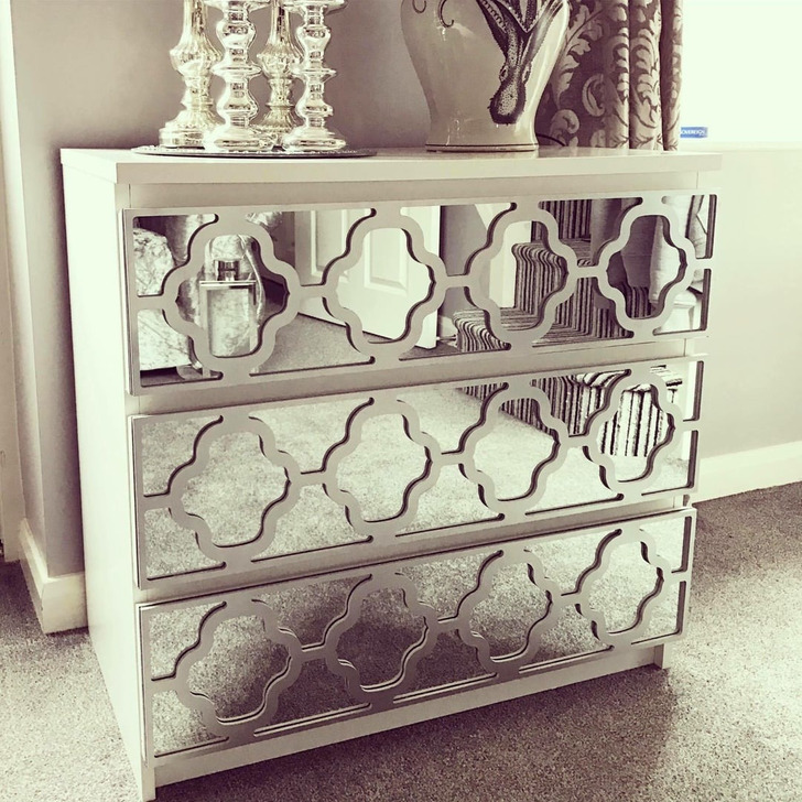 " Des miroirs, un motif en bois, de la peinture — et voilà ta table de nuit triste métamorphosée. Je suis très satisfait du résultat "