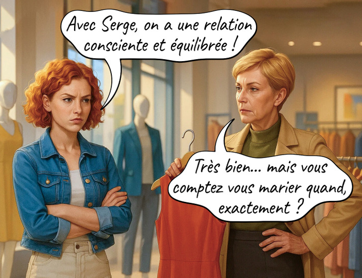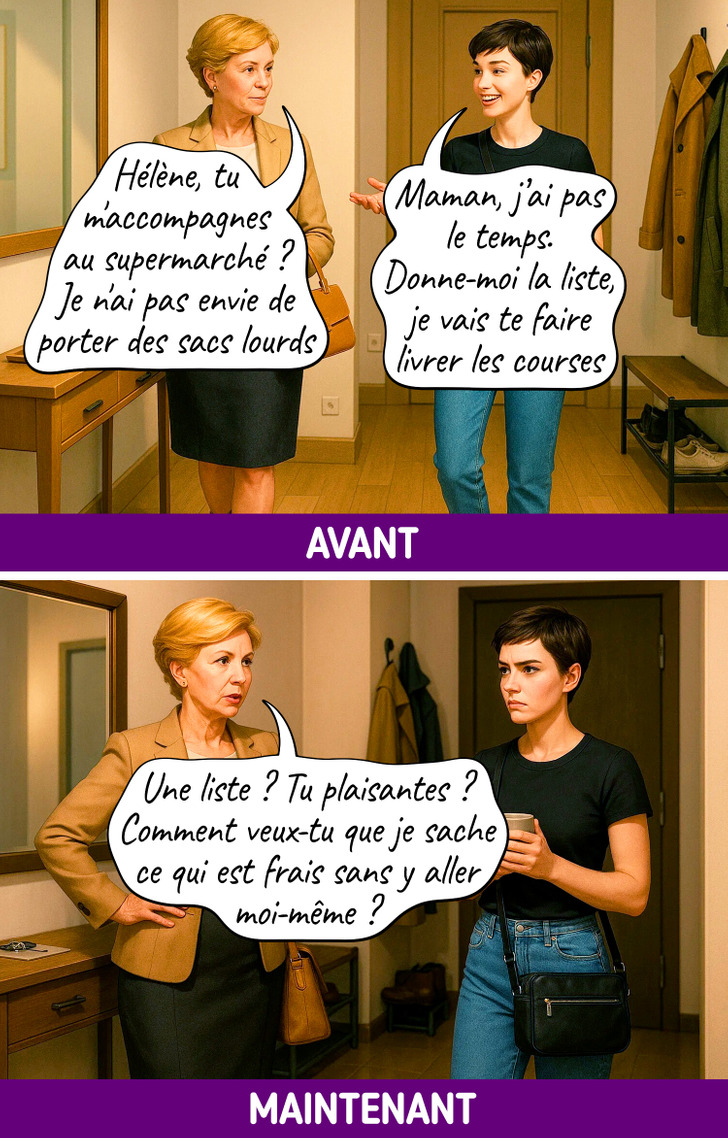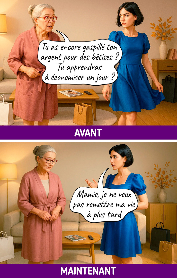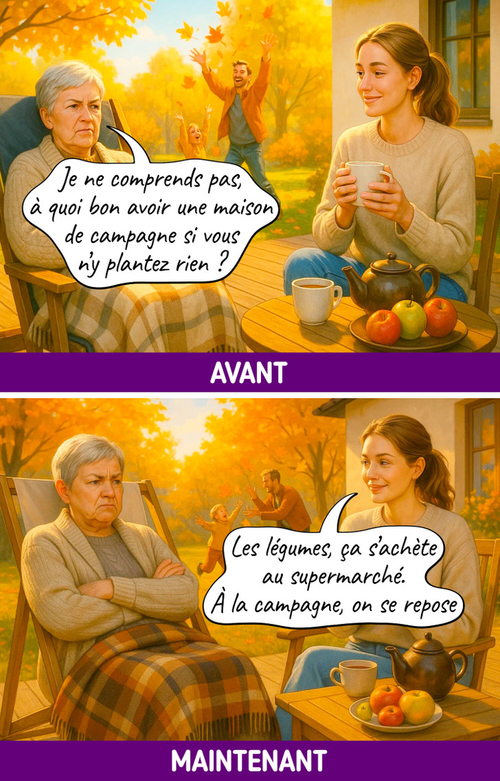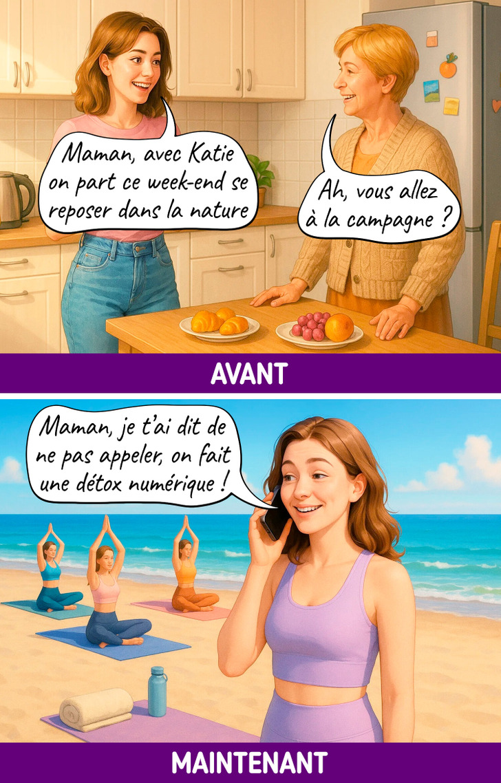 Chaque génération est convaincue que sa manière de vivre est la seule valable. Les parents peinent à comprendre l’intérêt de compter les calories, de préférer un psychologue aux confidences entre amies, ou de recourir à une femme de ménage. Les jeunes, de leur côté, ne voient pas pourquoi il faudrait " serrer la ceinture " par peur de l’avenir, ou persister à téléphoner plutôt qu’à envoyer un message. Résultat : un dialogue de sourds où, bien que parlant la même langue, les deux camps peinent à se comprendre.