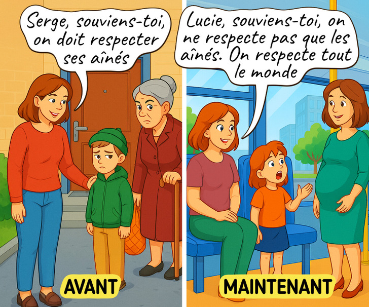 Auparavant, l’éducation insistait sur l’importance de respecter ses aînés. Aujourd’hui, les parents apprennent dès le plus jeune âge à leurs enfants que le critère à considérer ne se limite pas à l’âge. Chacun d’entre nous peut avoir besoin de soutien