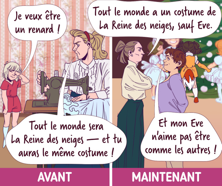 Beaucoup d’entre nous ont été éduqués par leurs parents à ne pas se démarquer et à faire passer les désirs des autres en premier. Aujourd’hui, les parents soutiennent l’expression de soi de leurs enfants.