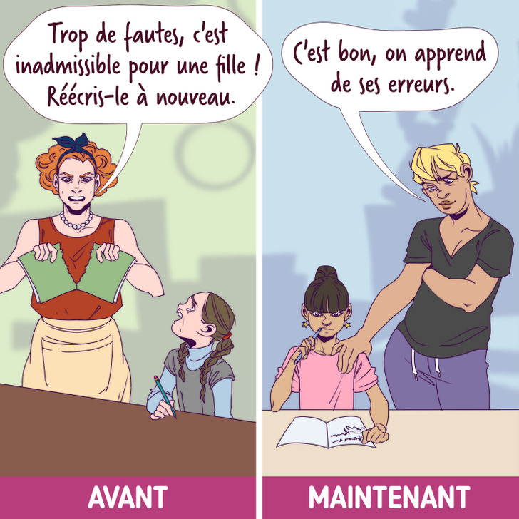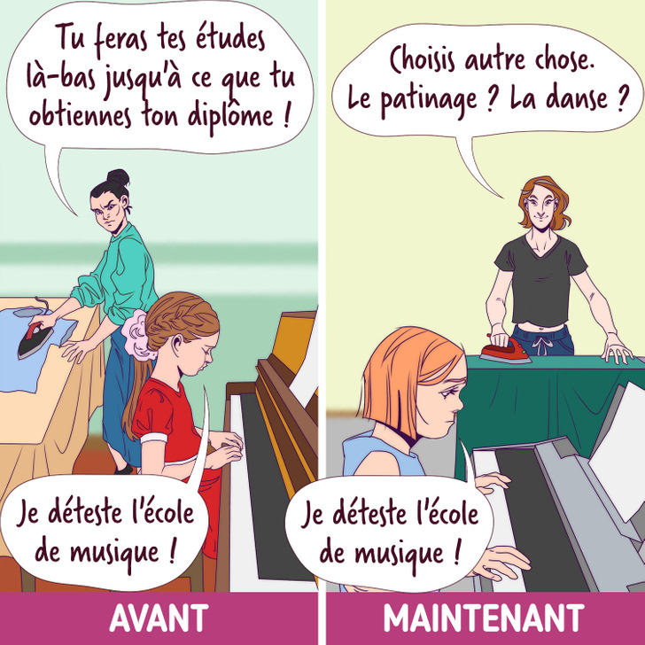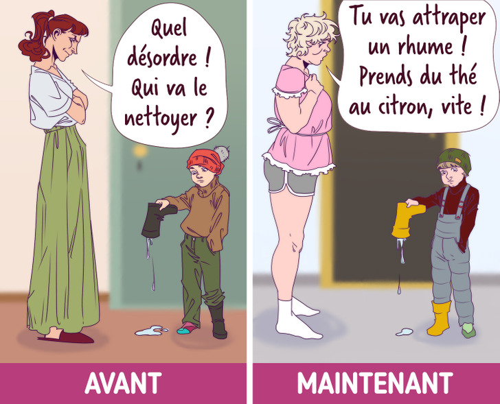 Les stratégies parentales sont en constante évolution. Ce que les parents nous interdisaient de faire il y a 20 ou 30 ans, nous l’autorisons souvent aujourd’hui à nos enfants. Et vice versa : des actions pour lesquelles un enfant aurait été félicité dans le passé peuvent susciter des attitudes négatives de la part des parents d’aujourd’hui.