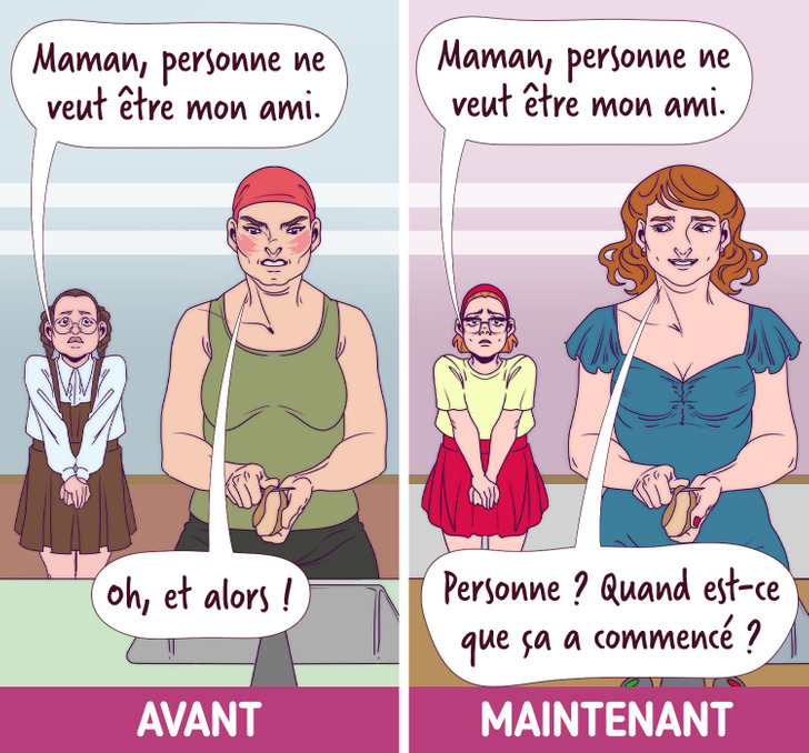 Les parents nous ont appris à ne pas nous plaindre et à résoudre nos problèmes par nous-mêmes. Les papas et les mamans d’aujourd’hui sont toujours prêts à écouter leurs enfants.
