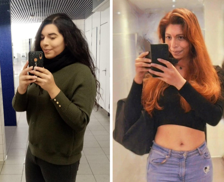 " J’ai trouvé la photo de gauche dans mon téléphone. Je me souviens à quel point j’étais en dépression profonde et combien chaque jour était difficile. Un an plus tard, je remarque un immense changement en moi "