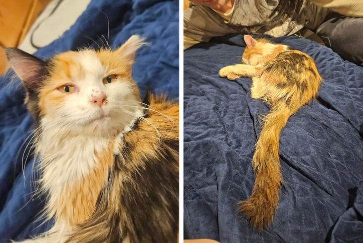 “Il est littéralement apparu de nulle part — un chat sauvage, ne faisait confiance à personne. J’ai passé deux mois à gagner sa confiance, et ce n’était pas en vain : maintenant Pablo vit comme un véritable roi ! Et en plus, il pose comme un mannequin.”