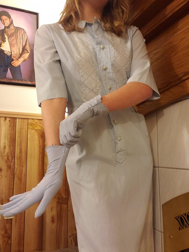 “J’ai trouvé une robe des années 50, et des gants vintage des années 40 s’y sont parfaitement accordés”