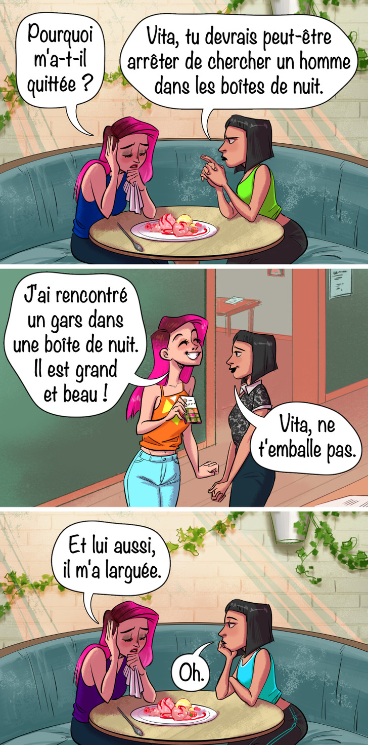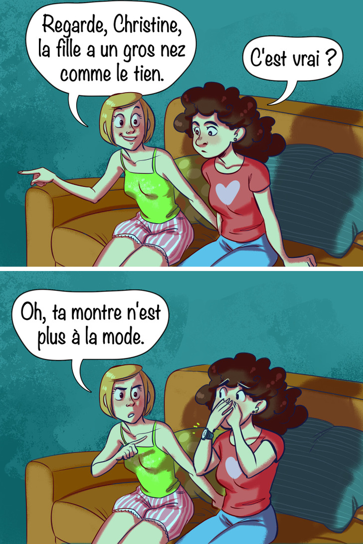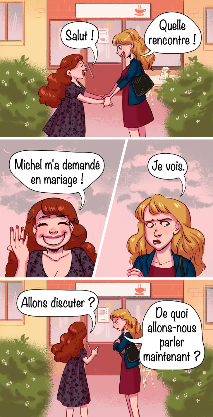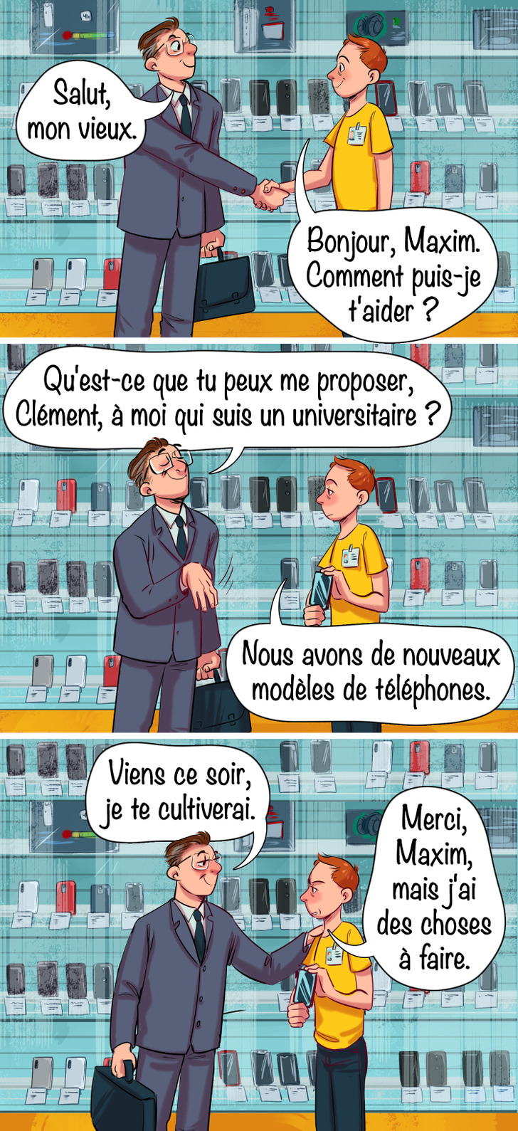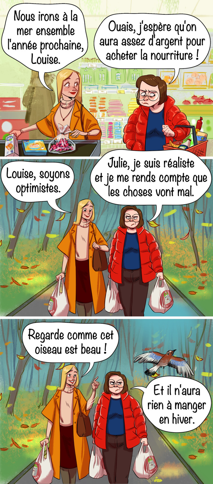 Nous sommes pour la paix et l’amitié ainsi que pour l’humour. C’est pourquoi nous avons décidé de représenter sous forme de vignettes les types de personnes avec lesquelles il n’est pas facile d’être ami.