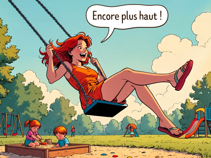 Même devenir maman ne nous empêche pas de rester enfant dans l’âme. Et tant que les tout-petits s’amusent dans leur bac à sable, on peut encore aller sur les balançoires — comme au bon vieux temps !