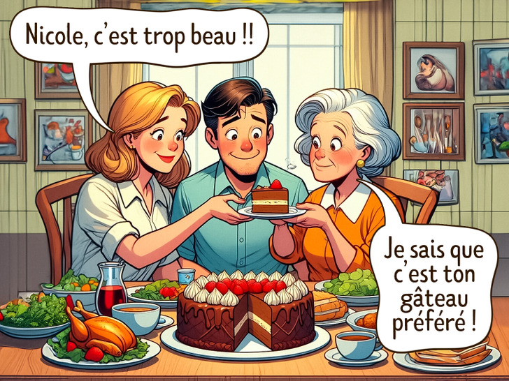 Et c’est aussi merveilleux quand quelqu’un prend soin de toi en tenant compte de tes goûts et préférences. Par exemple, ma belle-mère prépare pour moi des gâteaux au chocolat parce que je les adore