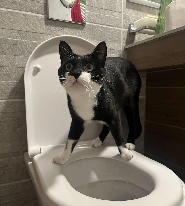 " Pris en flagrant délit. Et pourquoi boire dans la cuvette des toilettes ? "