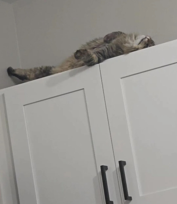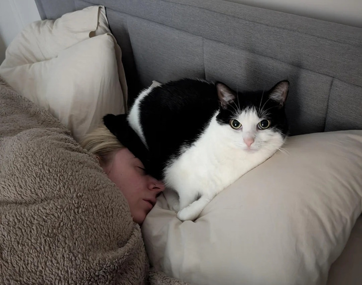 Les chats trouvent toujours des endroits originaux pour dormir. Et des méthodes originales pour montrer leur amour. Ce compagnon a réussi dans tous les domaines
