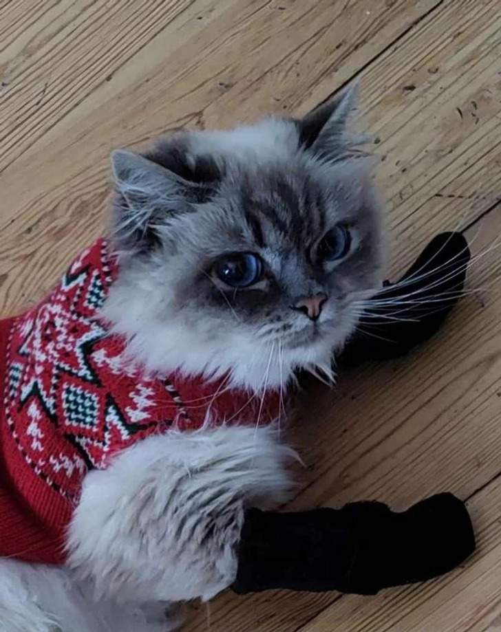 " Nous nous promenons souvent avec le chat, alors j’ai dû lui acheter de petites bottes chaudes "