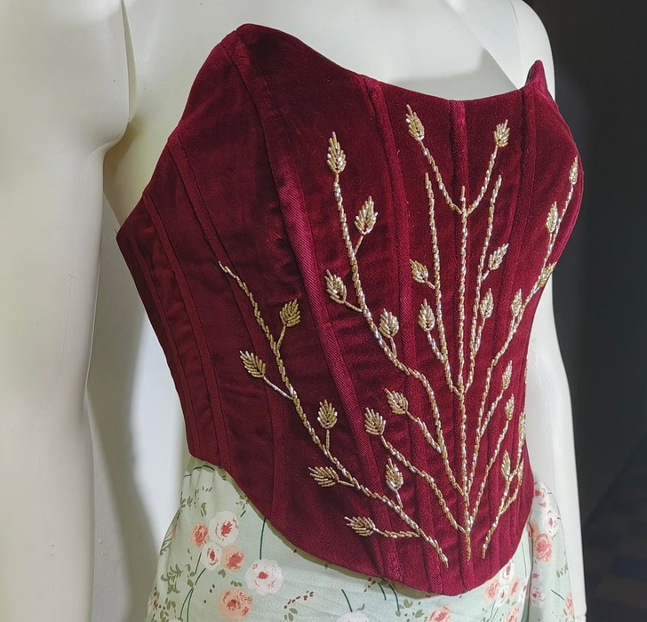" J’ai réalisé un corset en velours avec une broderie perlée faite à la main ! "