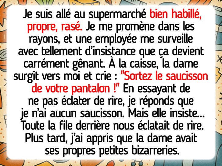 Même une simple sortie au supermarché peut devenir une petite aventure, surtout quand on tombe sur des personnages pour le moins... surprenants. Certains ne peuvent pas acheter du pain sans que ça tourne à l’anecdote — alors pour des achats plus importants, on imagine bien le spectacle. Ces petites histoires de courses valent vraiment la peine d’être partagées entre amis.