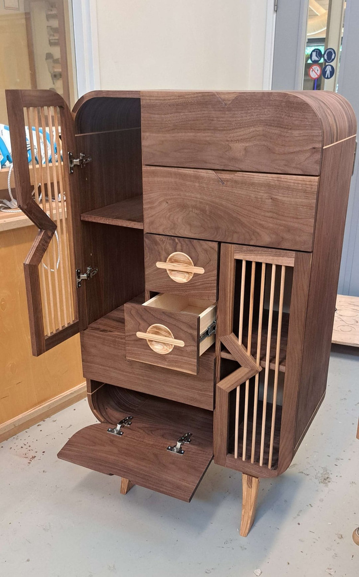 " Aujourd’hui, mon père fête ses 72 ans ! C’est un vrai touche-à-tout, il est plus simple de dire ce qu’il ne sait pas faire. L’un de ses chefs-d’œuvre ? Ce meuble absolument incroyable ! "