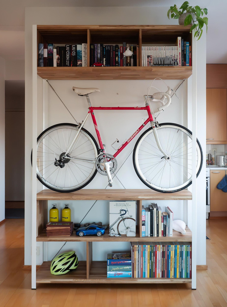 " J’ai fabriqué des étagères pour les livres et en même temps, un endroit pour ranger le vélo "