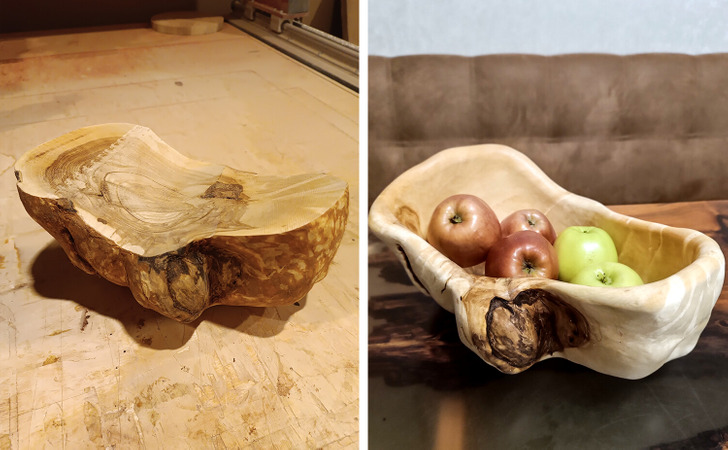 " J’ai rapporté une loupe de bouleau de la forêt. Elle a séché chez moi pendant environ un an. Le résultat ? Un bol unique comme celui-ci "