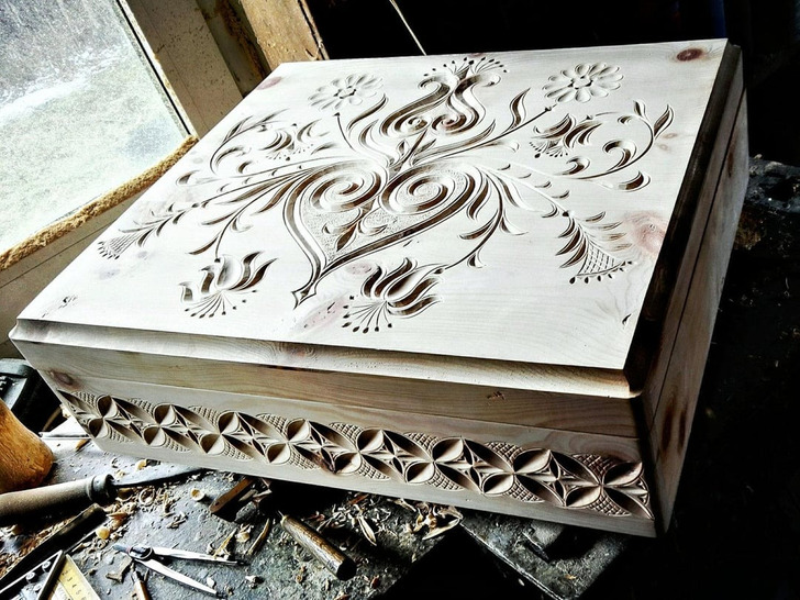 " J’ai dit à ma copine que je savais un peu sculpter le bois. Elle m’a répondu avec sarcasme : “Bien sûr que tu sais le faire !” Alors, je lui ai fabriqué cette boîte "