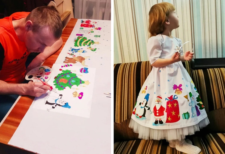 “J’ai dessiné sur le tissu, et ma femme a confectionné une robe pour notre fille”