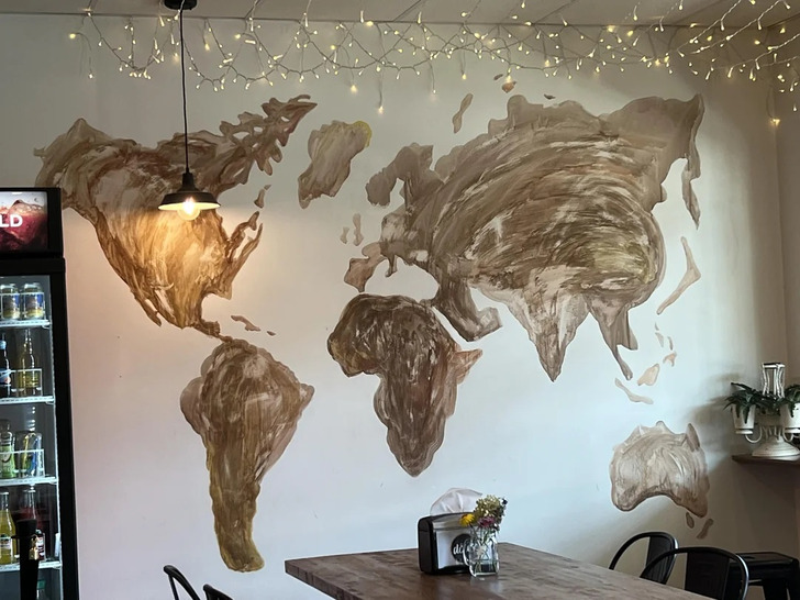 10. “Cette carte du monde sur le mur d’un café semble dessinée par un enfant avec son caca”