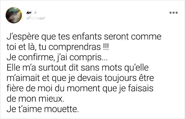 Quelle est la phrase de ta mère dont tu te souviens le plus ?