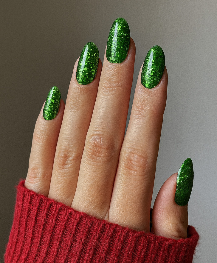Alors que les finitions rouges scintillantes à l’effet miroir sont habituellement les grandes favorites de Noël, cette année, le vert s’impose sur le devant de la scène.