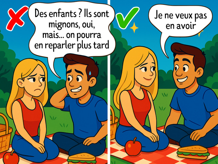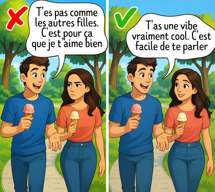 Un signe puissant mais subtil de maturité émotionnelle, c’est quand quelqu’un évite de te comparer à ses ex, à ses amis ou à qui que ce soit d’autre. Pas de phrases du genre “tu es tellement plus calme que mon ex” ou “ça me rappelle quelqu’un que je connaissais avant”. Pourquoi est-ce un “green flag” ? Parce que cela montre qu’il ou elle est pleinement présent(e), sans alourdir le moment avec des histoires passées ou les attentes des autres.