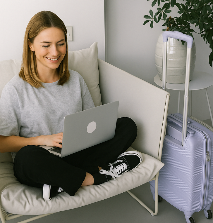 Le lendemain matin, je suis arrivé au bureau à huit heures pétantes, comme demandé. Mon trajet avait nécessité trois changements et m’avait pris plus de deux heures, mais je me suis assurée d’arriver à l’heure, en traînant derrière moi une petite valise à roulettes.