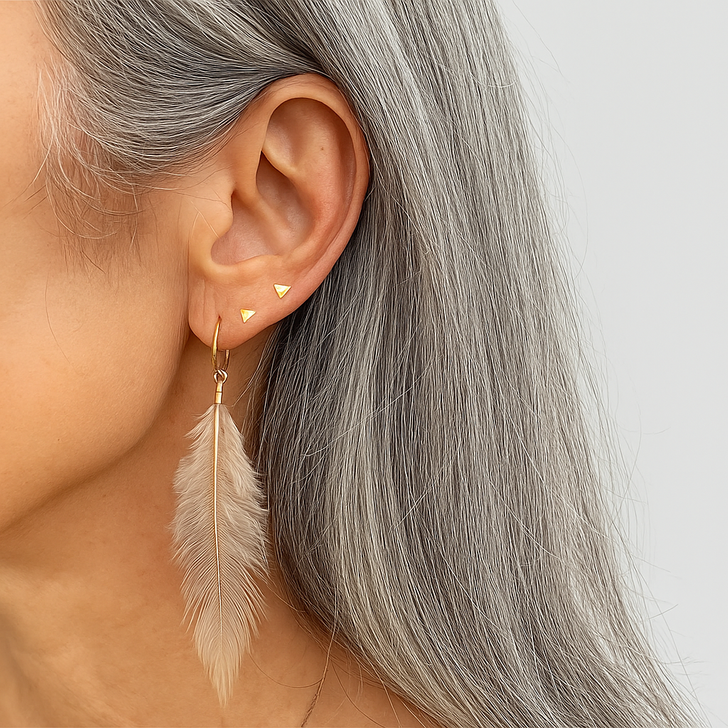 Quand tu restes fidèle à toi-même, ta beauté naturelle se révèle. Choisir de porter tes cheveux gris est un geste plein d’assurance et de grâce que de plus en plus de femmes adoptent. Cela dégage une aura paisible et élégante et les bonnes boucles d’oreilles peuvent la faire briller encore davantage.