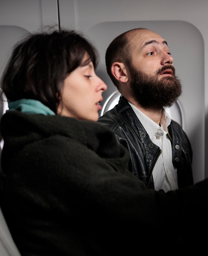 J’étais sur un vol international de 10 heures, et j’étais assis en classe économique, j’avais le siège du milieu. Je voyageais pour le travail et j’étais épuisée. Je voulais juste un repas et une sieste.