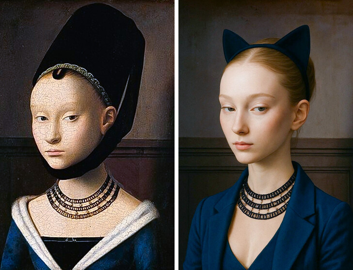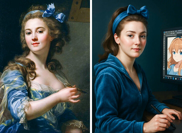 Nous avons l’habitude de ne voir dans les personnages de la peinture classique que des images figées d’un lointain passé. Mais il suffit de les imaginer au XXIe siècle — avec une coupe de cheveux tendance, des vêtements stylés et des accessoires modernes — pour que la magie opère. Un sévère dignitaire se transforme en développeur branché, une dame hautaine devient une influenceuse des réseaux sociaux. Notre projet montre clairement une chose : nous avons bien plus en commun avec les personnages des toiles anciennes qu’il n’y paraît.